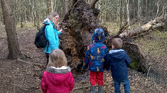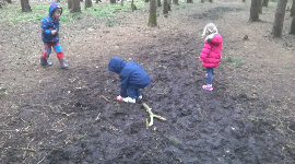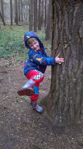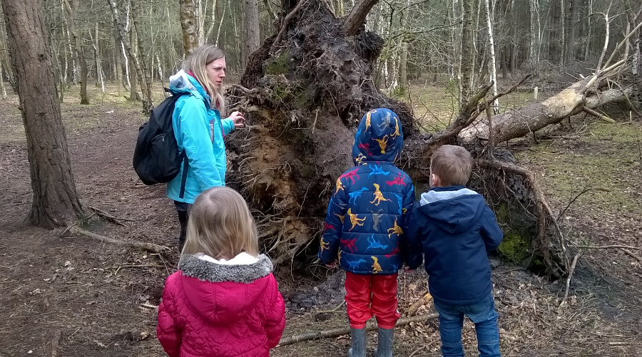 Another Forest School session with the lovely Jo. We had some very strong winds recently so when we did a discovery walk through the forest we came across a large tree that had blown over. Jo pointed out the roots of the tree to the children and explained that the thickest roots spread out as wide as the branches of the tree. The children poked and prodded the roots and looked into the big hole.