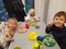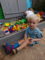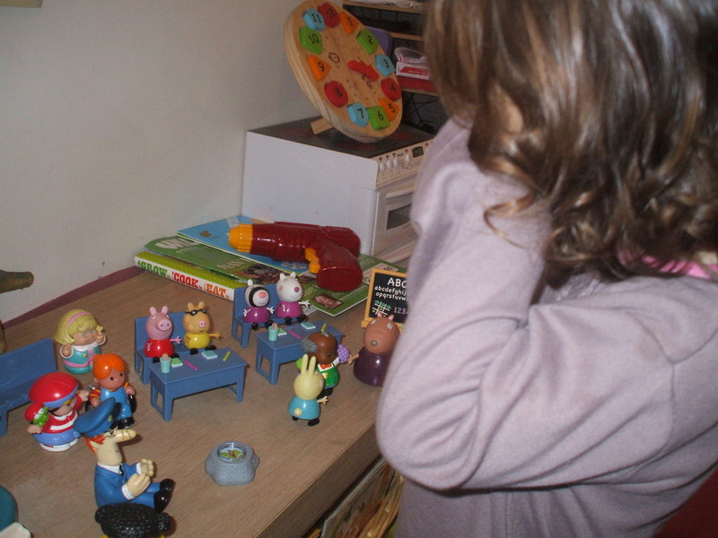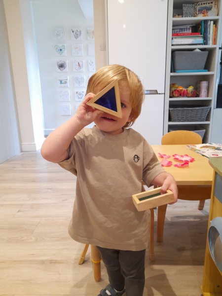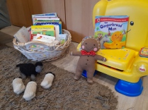 We also often have a tough tray in front of the sofa under the covered area with activities or free play around that week’s topic. The children don’t have to play with this in any particular way, it’s an investigation and learning experience for them. I play alongside them, narrating what I am doing and commenting on what they are doing, answer questions, work out solutions but I also ask them questions and for help and make sure I am sometimes quiet so that I can observe their play and let them chat amongst themselves