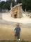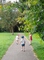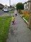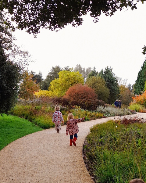 There is a curved path which leads to the bottom of the lawn. The children often draw with chalks on this path.