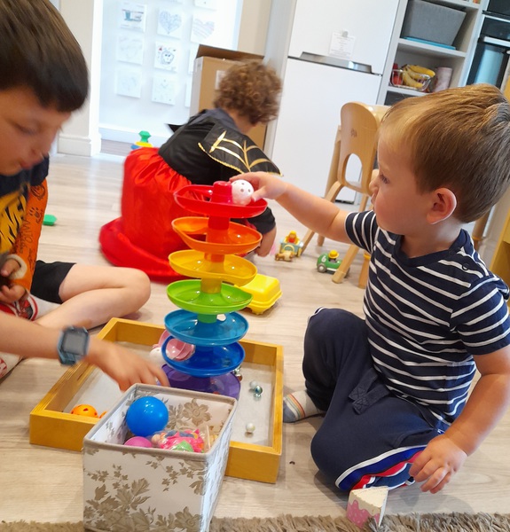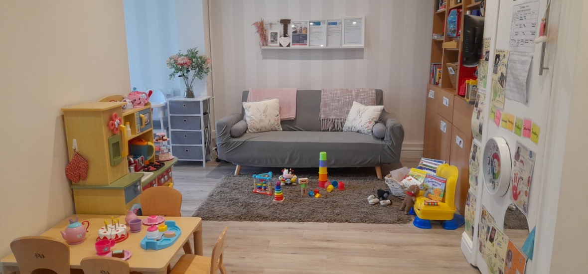 Our light and welcoming playroom changes all the time. I usually set out toys and resources depending on our learning topic for that week, aiming to encourage each child’s interests, knowledge, skills and future learning. The children can also access toys and resources themselves, but I ask them to tidy away what is already out before they get new things out. We are very child led and will encourage children to make their own choices and then show an interest in their play and join in where appropriate. I also encourage free play where the children play independently and don’t have assistance from me unless they ask for it or I can see they need it.