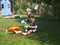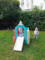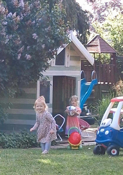 We sometimes have a small bouncy castle on the lawn, or set up a tent, sometimes an assault course, or have the paddling pool or sprinkler out. This area changes all the time.
